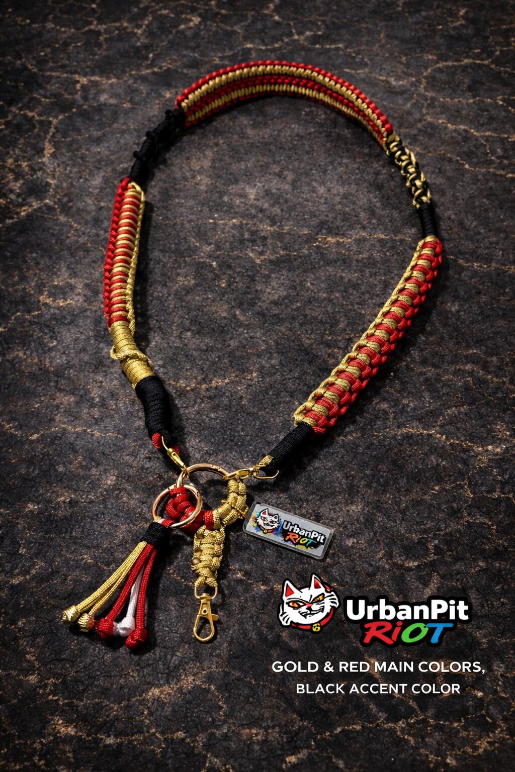 ゴールドとレッドメインにアクセントカラーとして、ブラックの入ったネックストラップです。