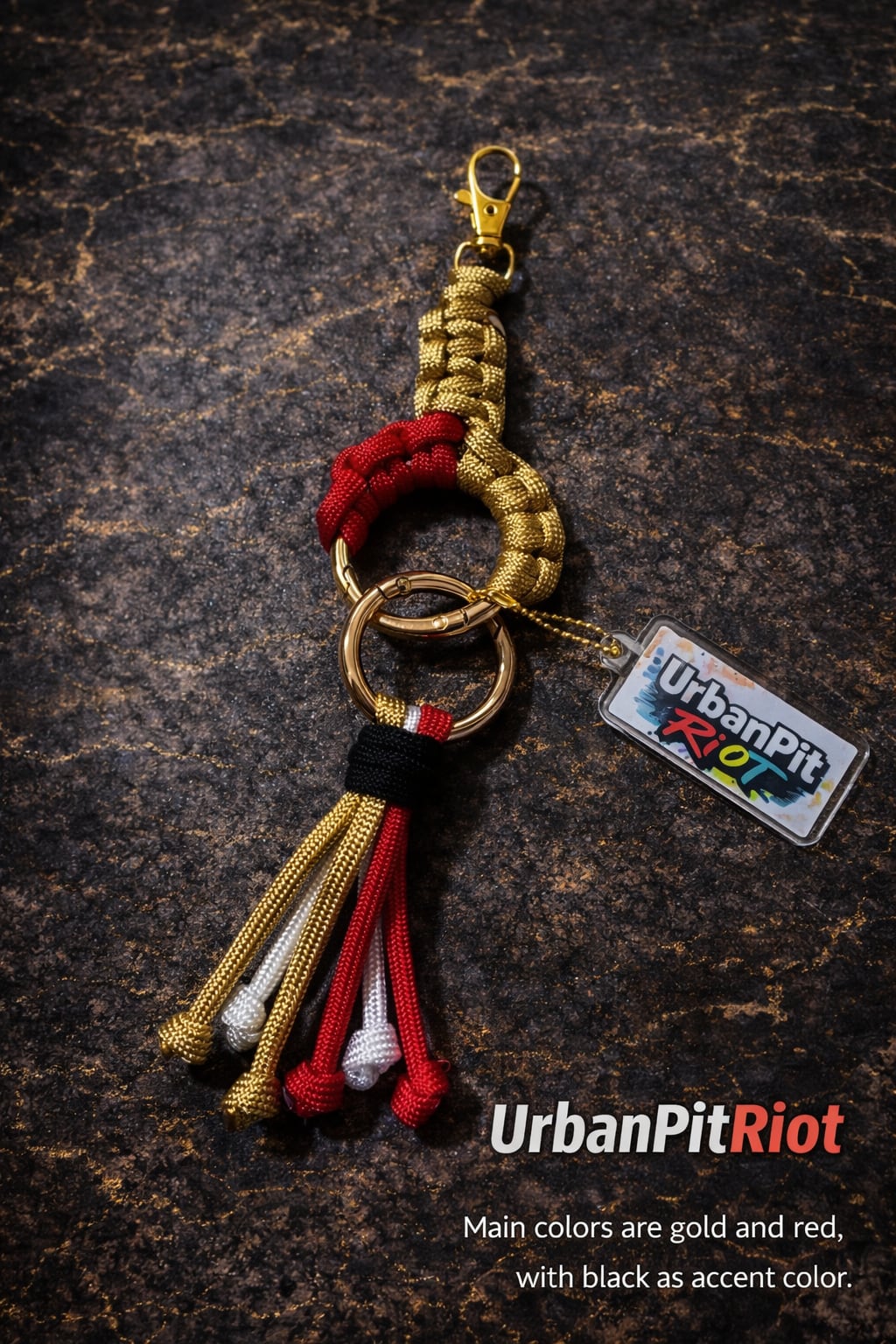端にはプロポを繋げる丸カンつき。ネックストラップとお揃いのカラーで、ミニタッセルストラップとUrbanPitRiotのキーホルダーもついています。